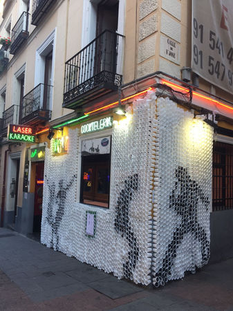 Se propone una intervención en la fachada del local Cher’s Karaoke de la calle Huertas, en Madrid.