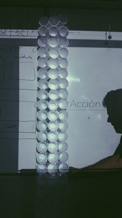 La intervención consiste en la creación de un mural de píxeles que se crea por la unión consecutiva de vasos de plástico, en los que van apareciendo siluetas que hacen referencia a escenas reconocidas y animan al espectador a proyectarse en la fachada.